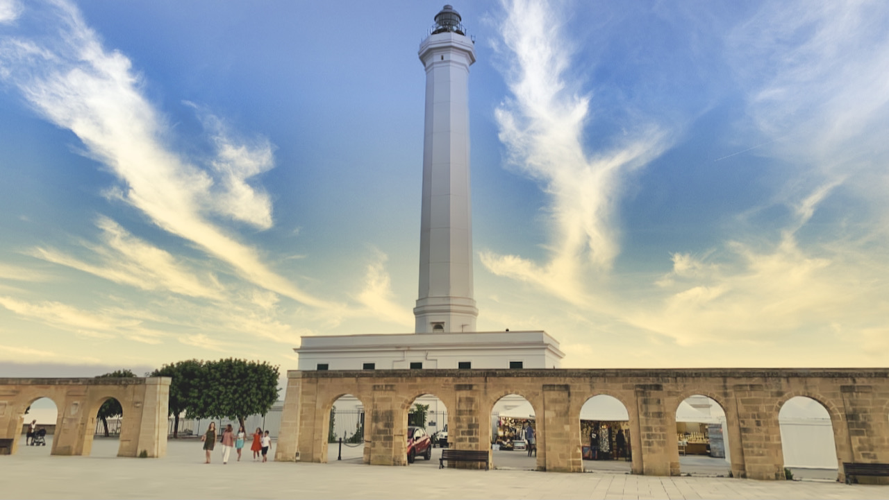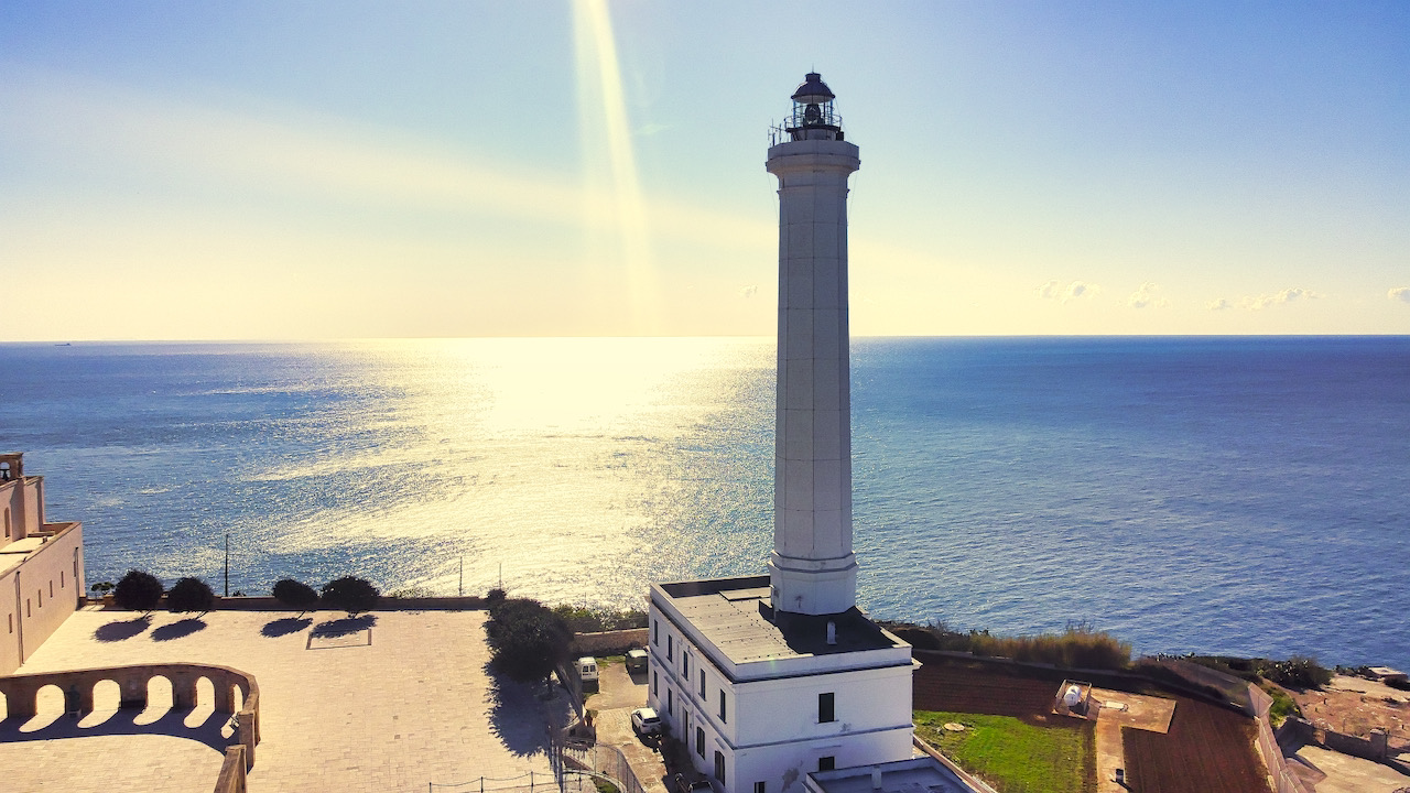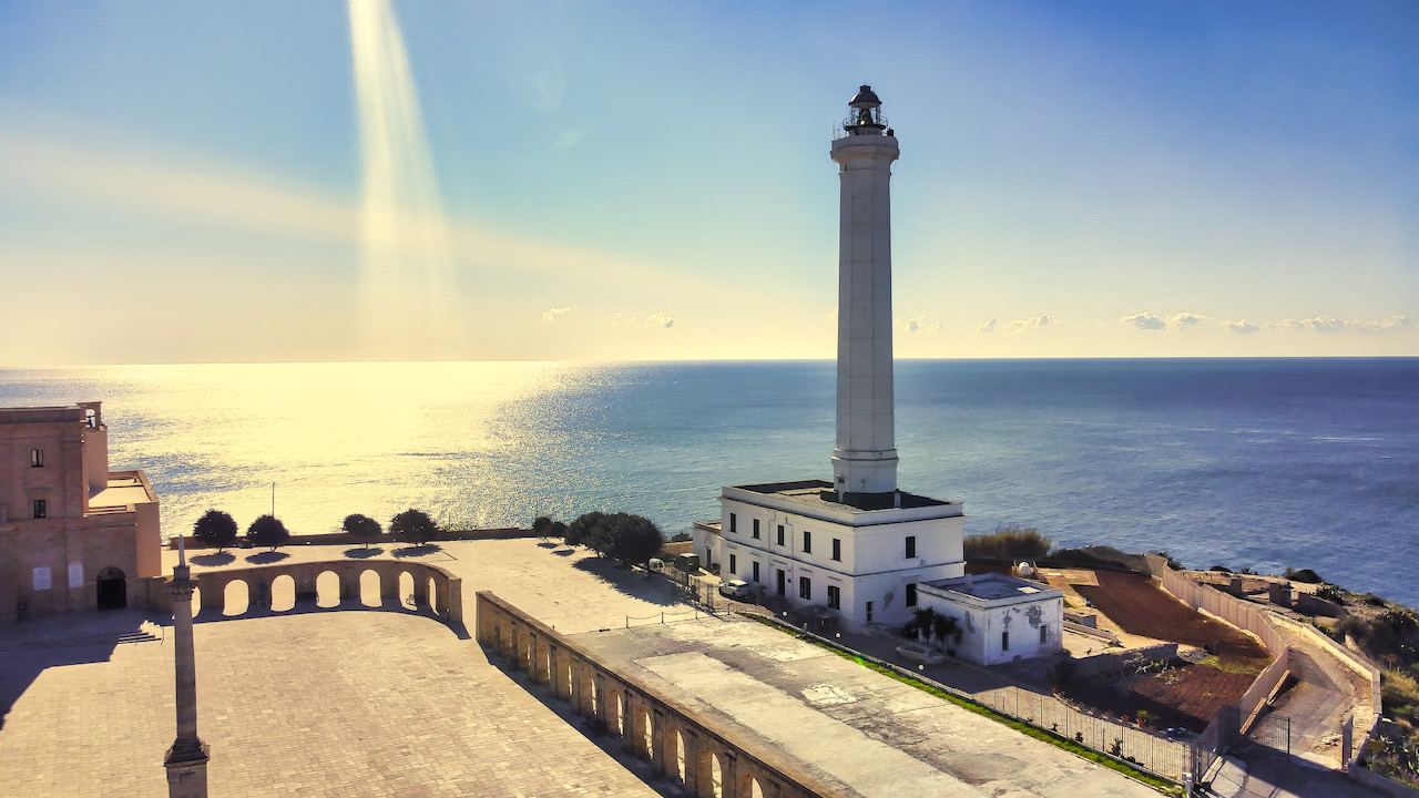 E’ un vero e proprio balcone sul Mediterraneo il piazzale del Santuario dominato dal bianchissimo faro. Alto 48 metri, è uno dei più importanti fari d’Italia, ed il secondo più alto d’Europa, posto sul limite del promontorio di Punta Méliso a 102 metri sul livello del mare. Realizzato nel 1866, produce un fascio di luce che può essere visibile fino a 40 km di distanza.